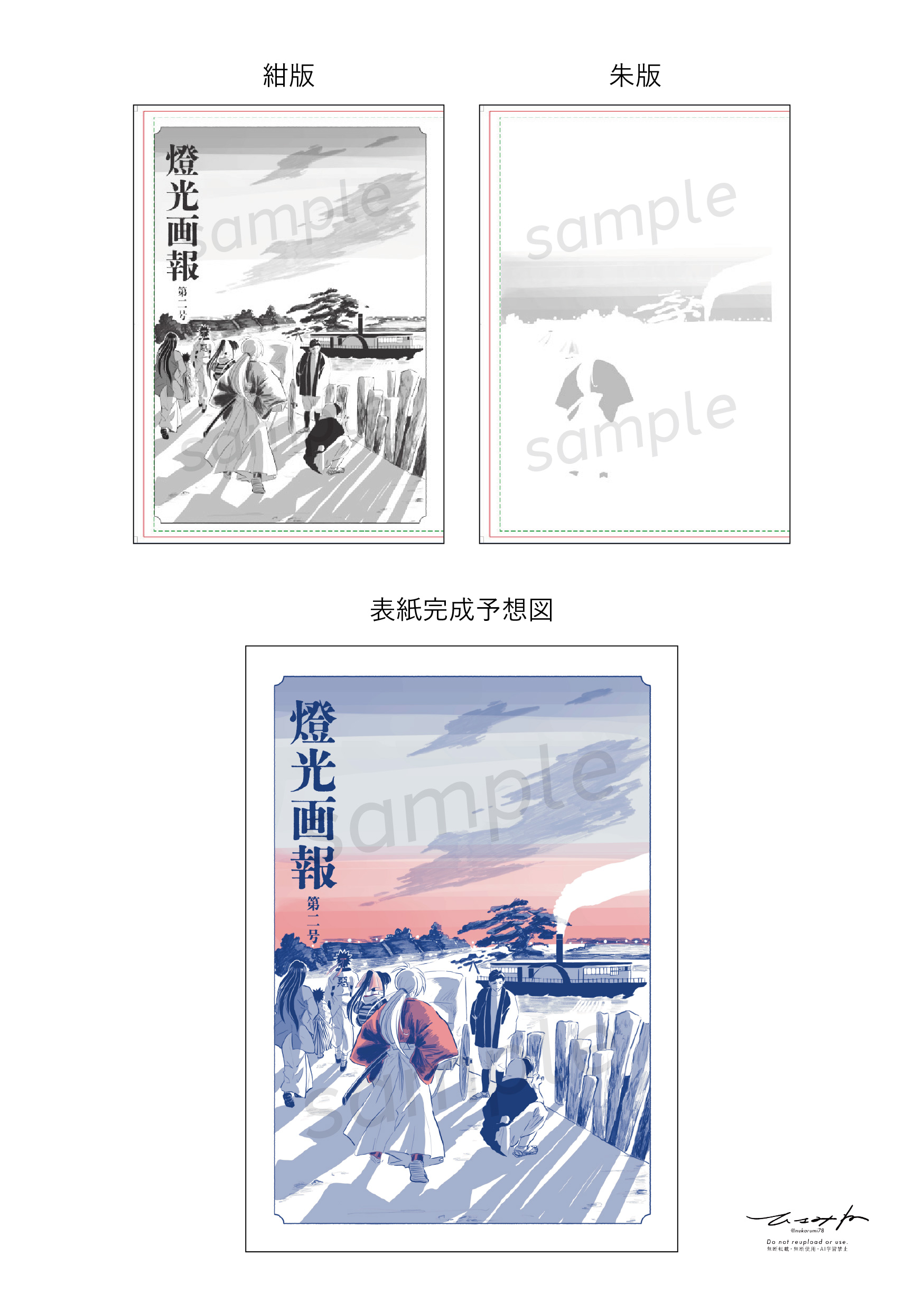 実際には4色分解という方法を使って孔版印刷でプリントしているため、本として手に取って見たときの印象とこの再録のデータはどうしても結構異なります。その他Web再録用に一部微修正しています。